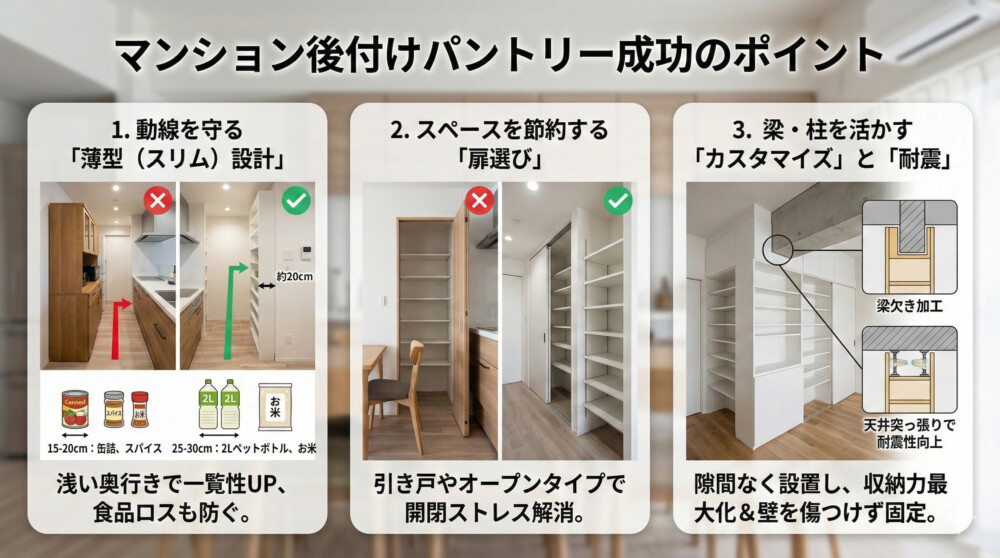 マンションでの後付けパントリー成功の鍵は、「薄型(スリム)設計」にあります。